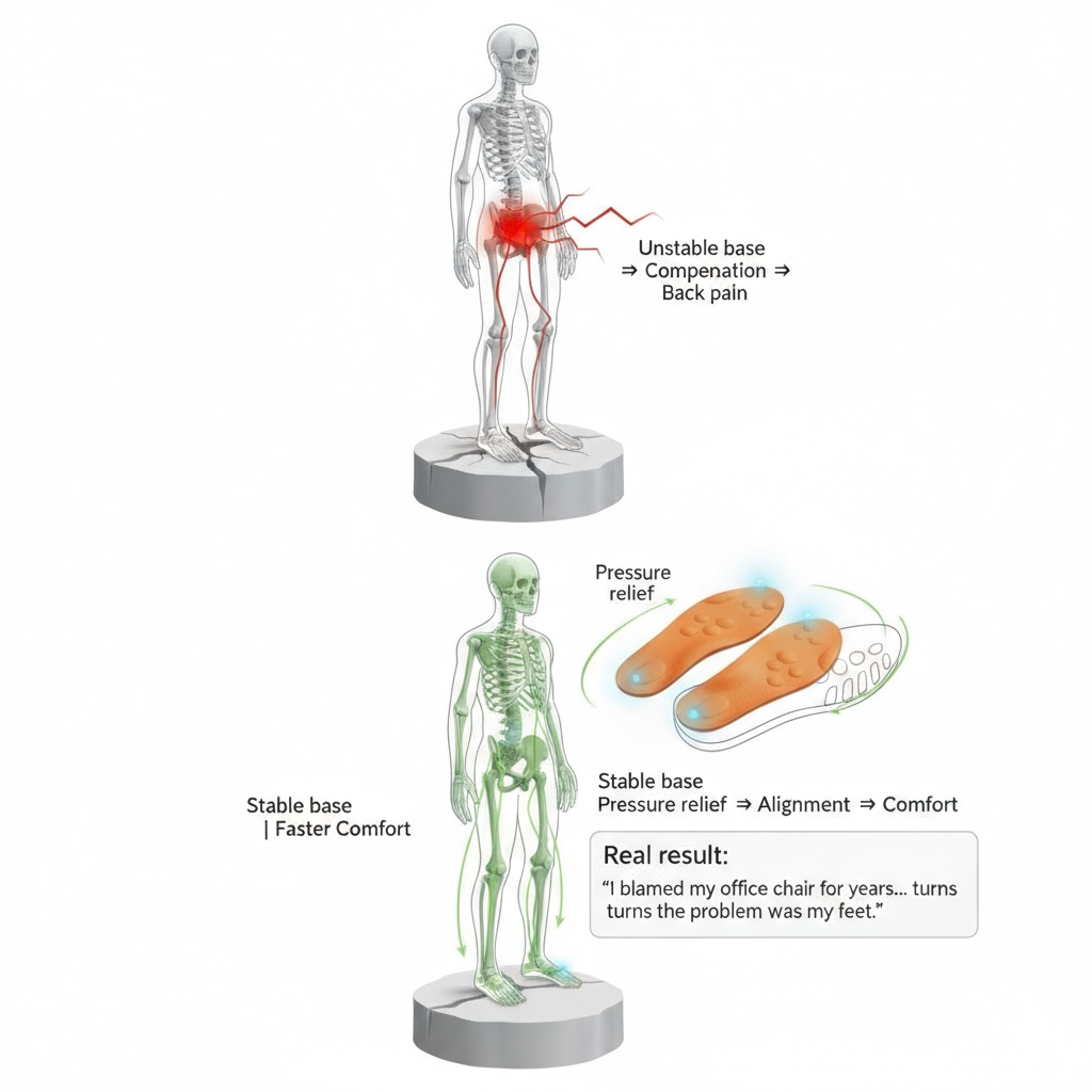 قدمك هي “القاعدة” اللي يحمل عليها جسمك كله. إذا القاعدة مو ثابتة، جسمك يحاول يعوض طول اليوم… والظهر يدفع الثمن.