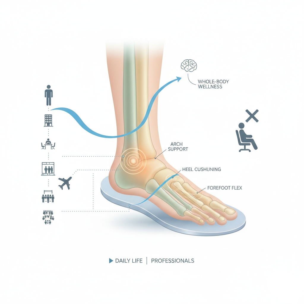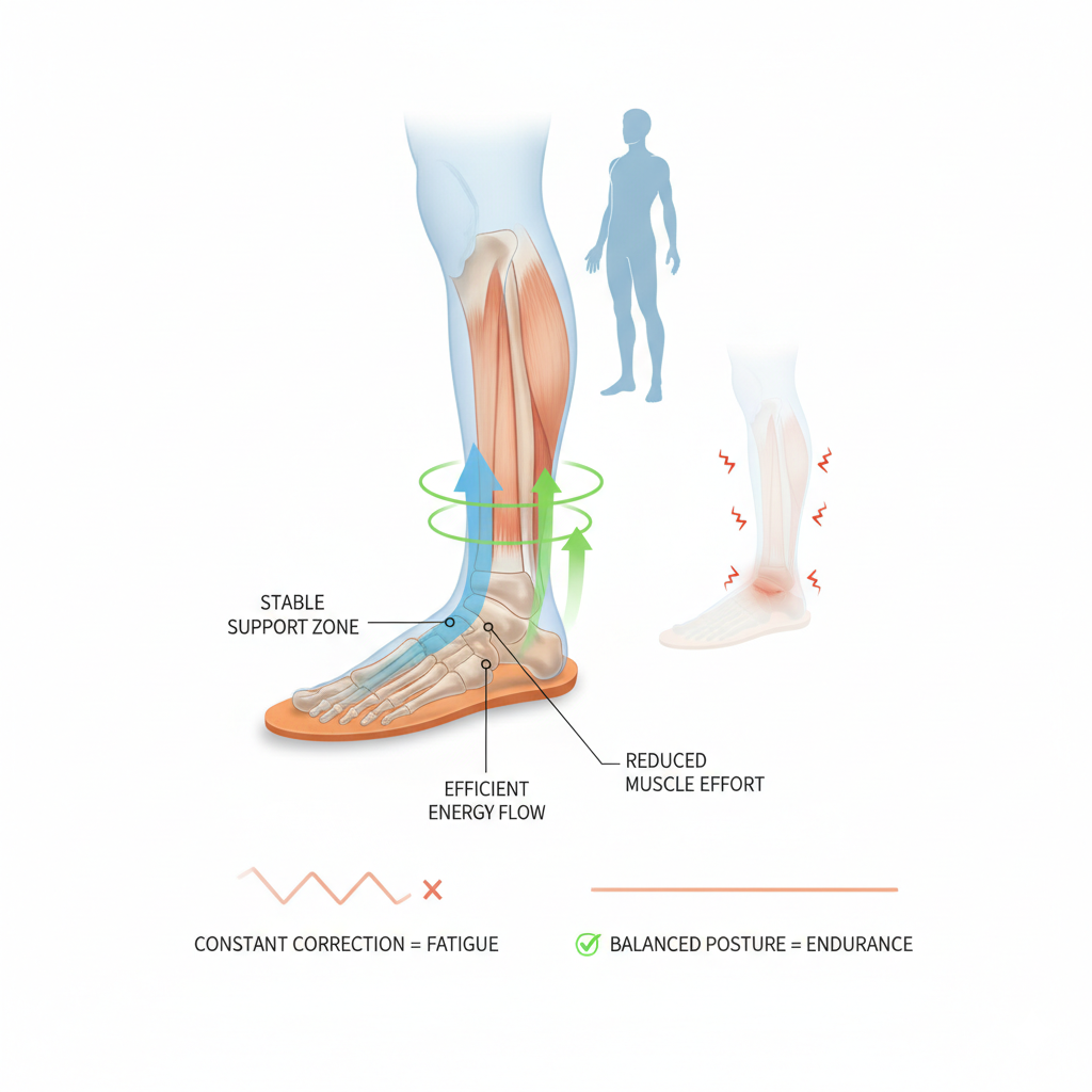 بدون دعم صحيح، عضلات الساق تقوم بتصحيحات صغيرة جداً طول الوقت للحفاظ على التوازن. آخر اليوم؟ تتعب حتى لو ما سويت شي “ثقيل”.